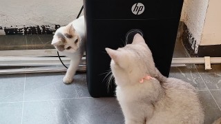 米米三个多月大,阿富六个月大。两个小家伙相差一个多月,一点也没有年龄差。 (