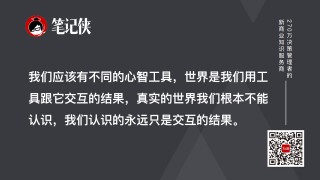 世界是变化的,你用不同的工具去看这个世界,结果就不一样。 我们应该有不同的心智工具,世界是我们用工具跟它交互的结果,真实的世界我们根本不能认识,我们认识的永远只是交互的结果。
