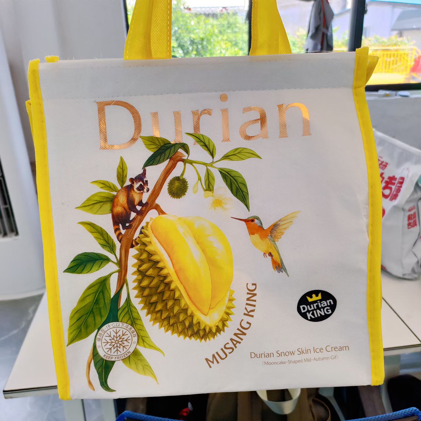 今年买给肖肖的中秋国庆礼物有点不一样,haha,是一盒猫山王榴莲冰皮月饼