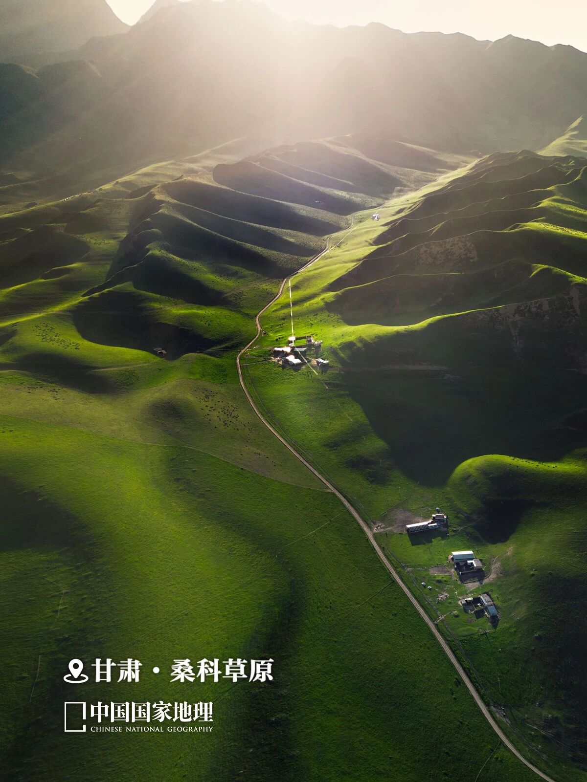 ④甘肃省甘南藏族自治州夏河县的桑科草原,地处青藏高原东北部,平均海拔3000米以上,为草甸草原。这里辽阔无垠,风光旖旎,颇具田园闲适之感。