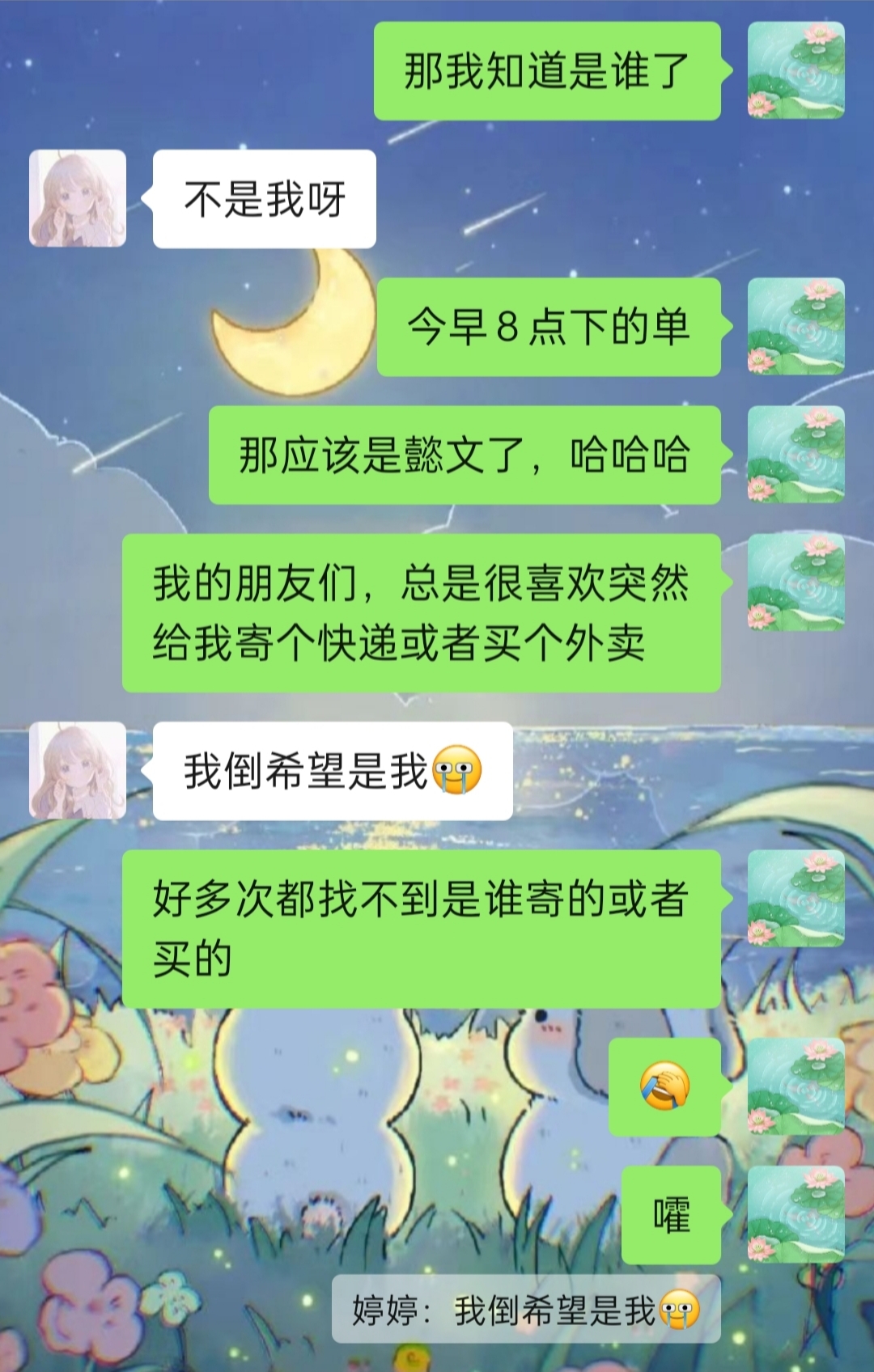 奇了怪了,不知道是谁给我买的。我去问了婷婷,婷婷说不是她,她倒希望是她的快递,因为她跑的许愿兔奖牌,跑完了还没发货,以前发货还挺快的