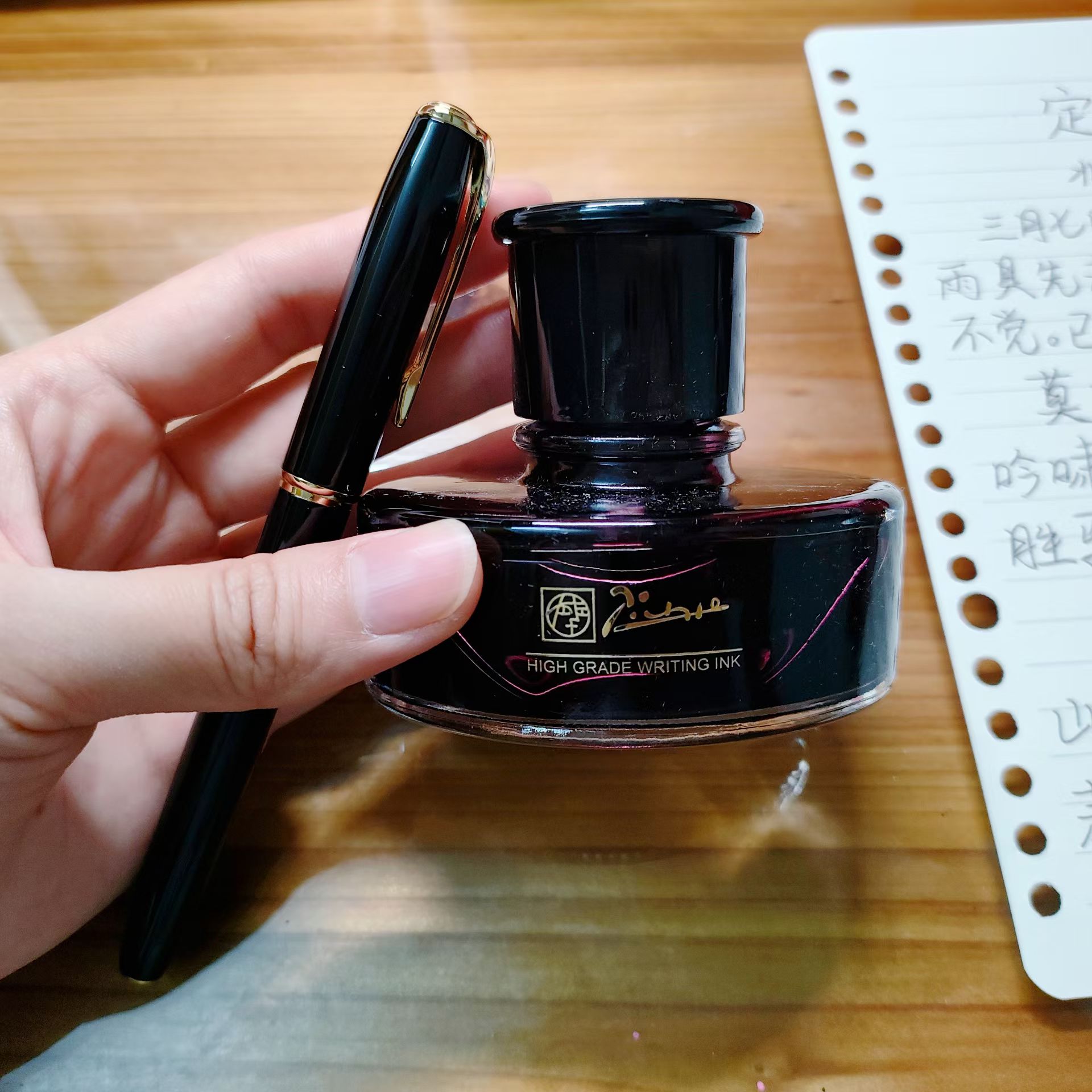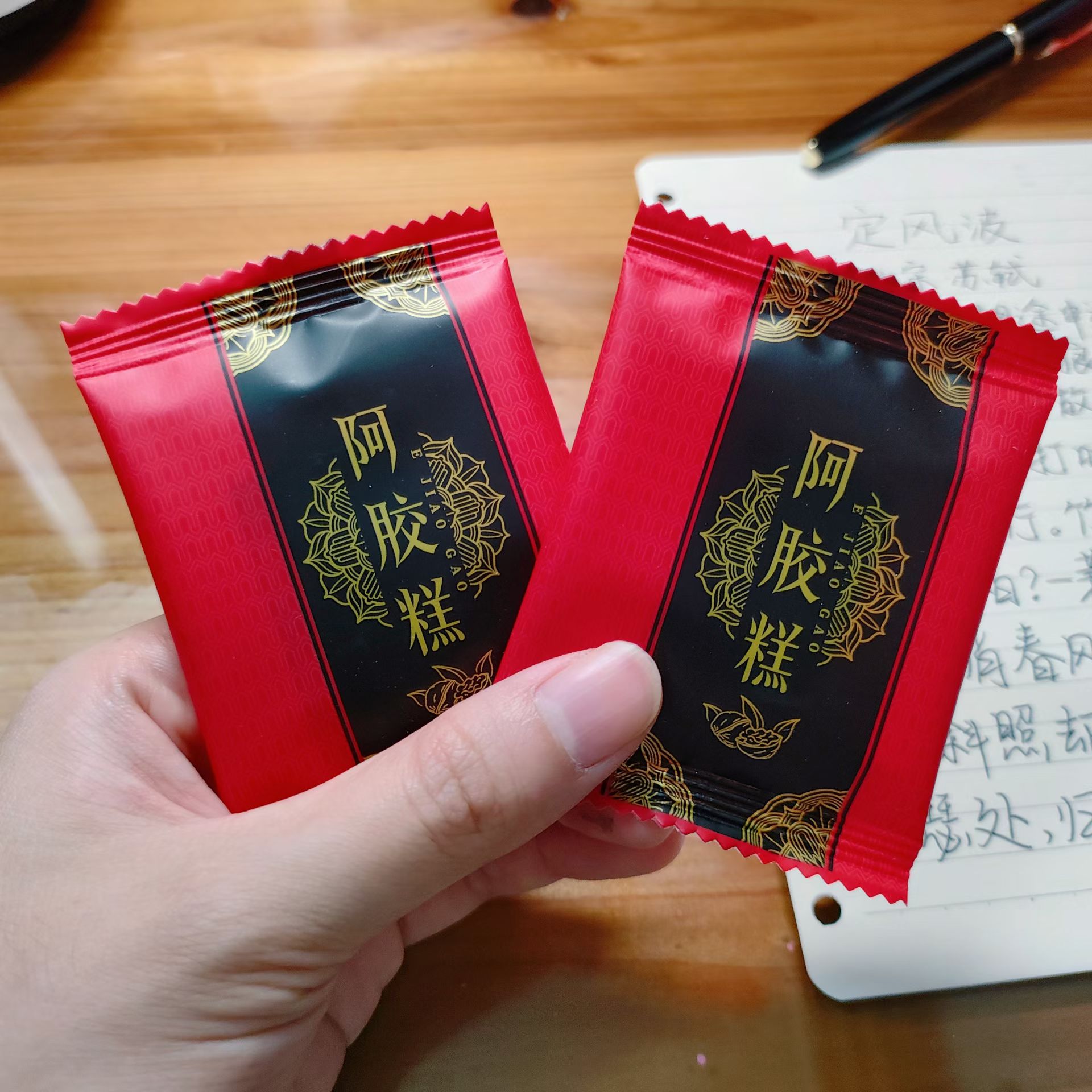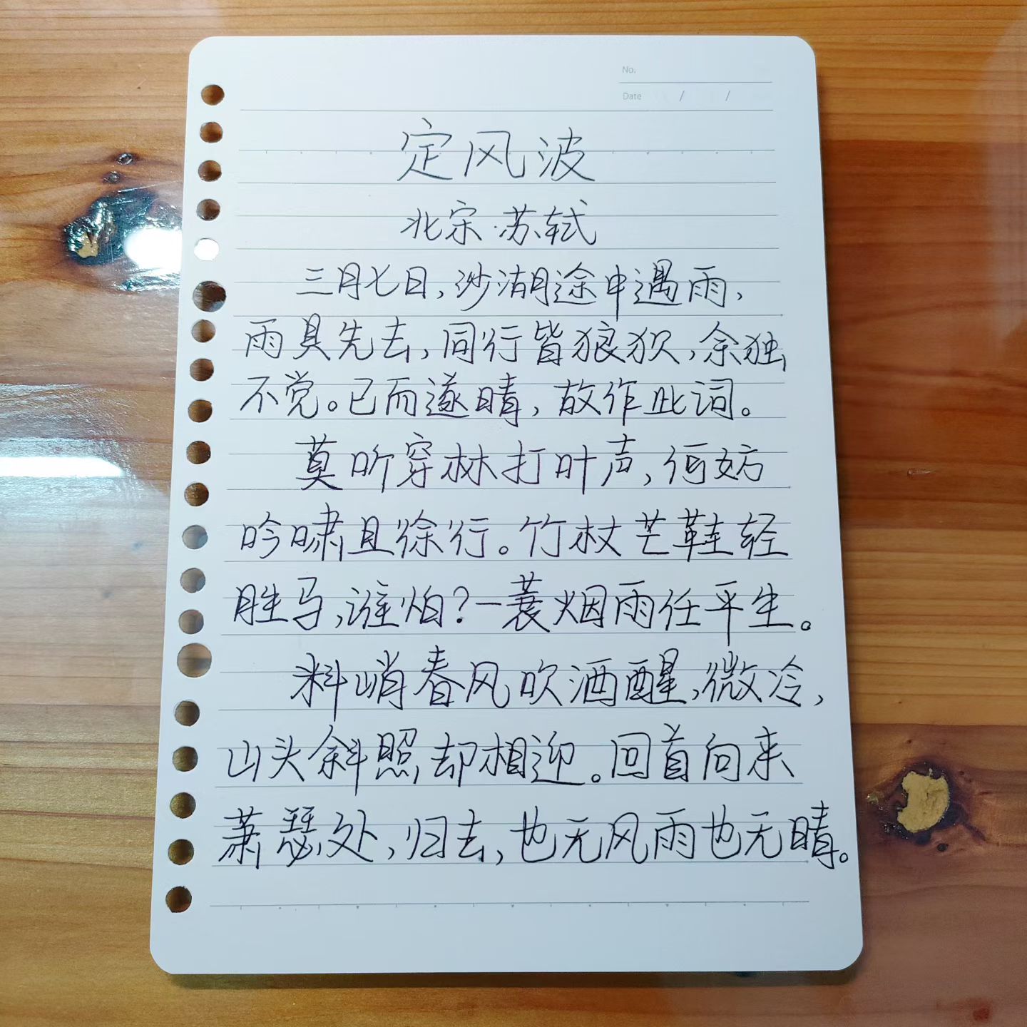 吃两块懿文送我的阿胶糕,用站长给我买的钢笔和墨水,写了首东坡的《定风波》