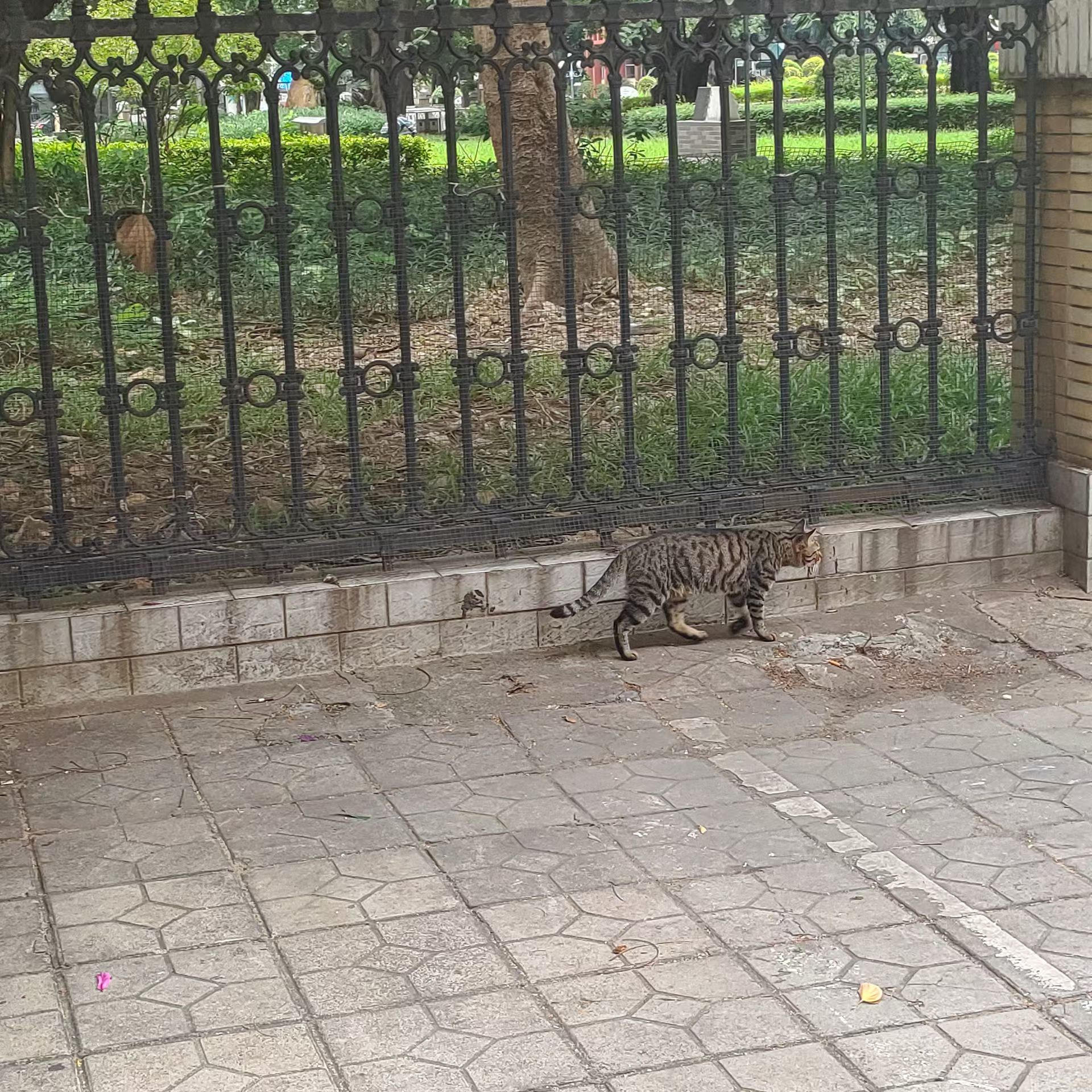 今晚出门逛逛的时候,看到有只流浪小猫在我旁边走着。