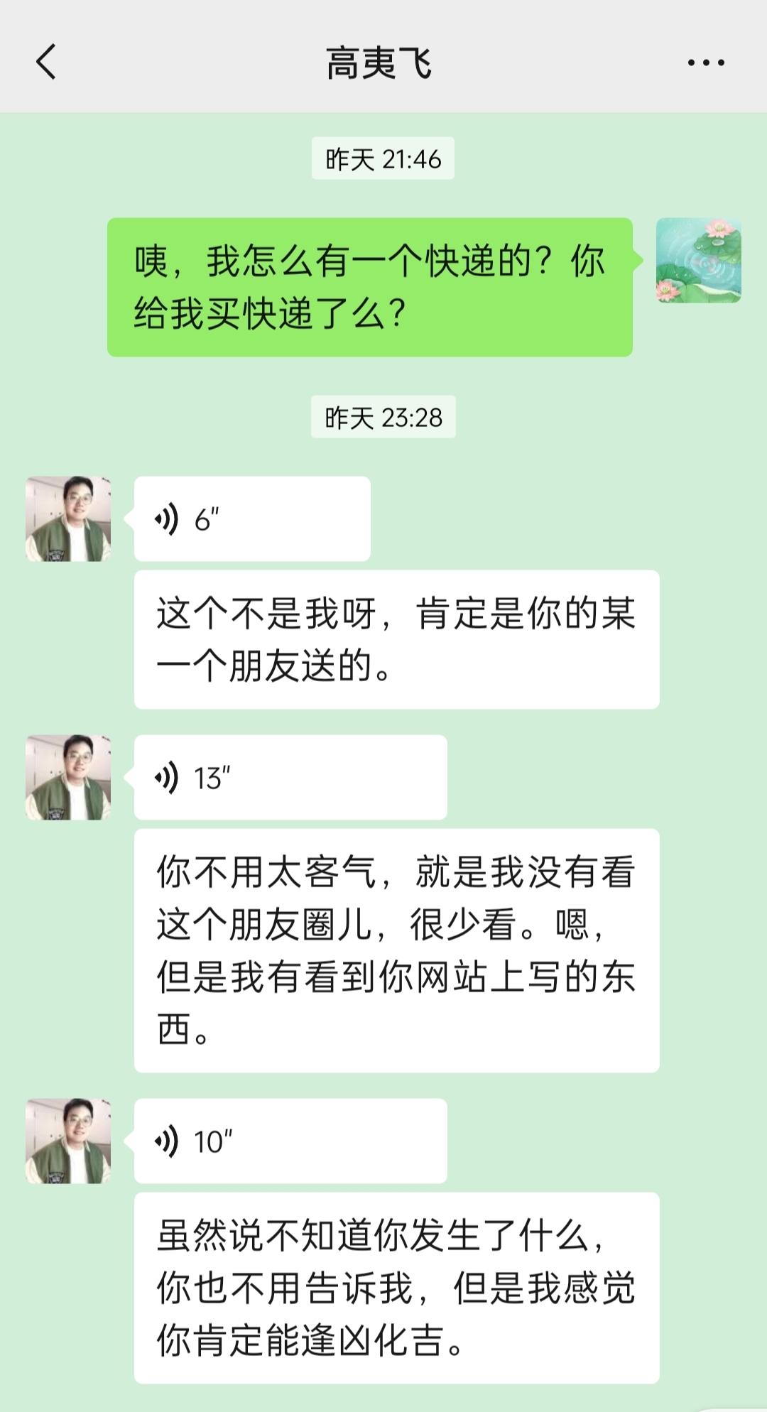 站长可能怕我怪他没看朋友圈,怕我觉得他没关心我吧,又跟我说了平常没有看朋友圈的习惯。