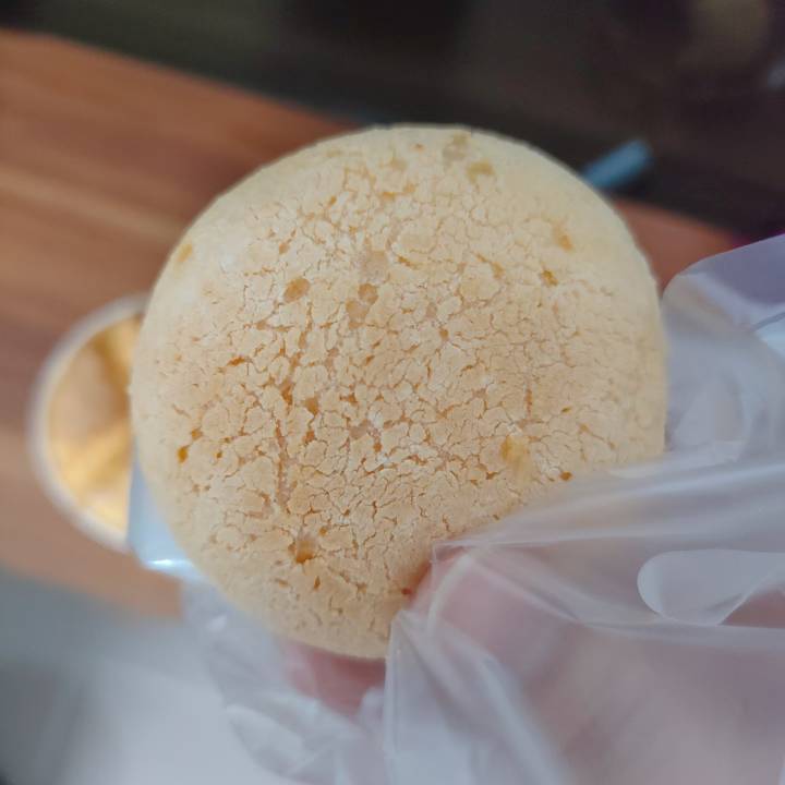 给我买了个牛奶蛋糕,还买了我最爱的麻薯球!!