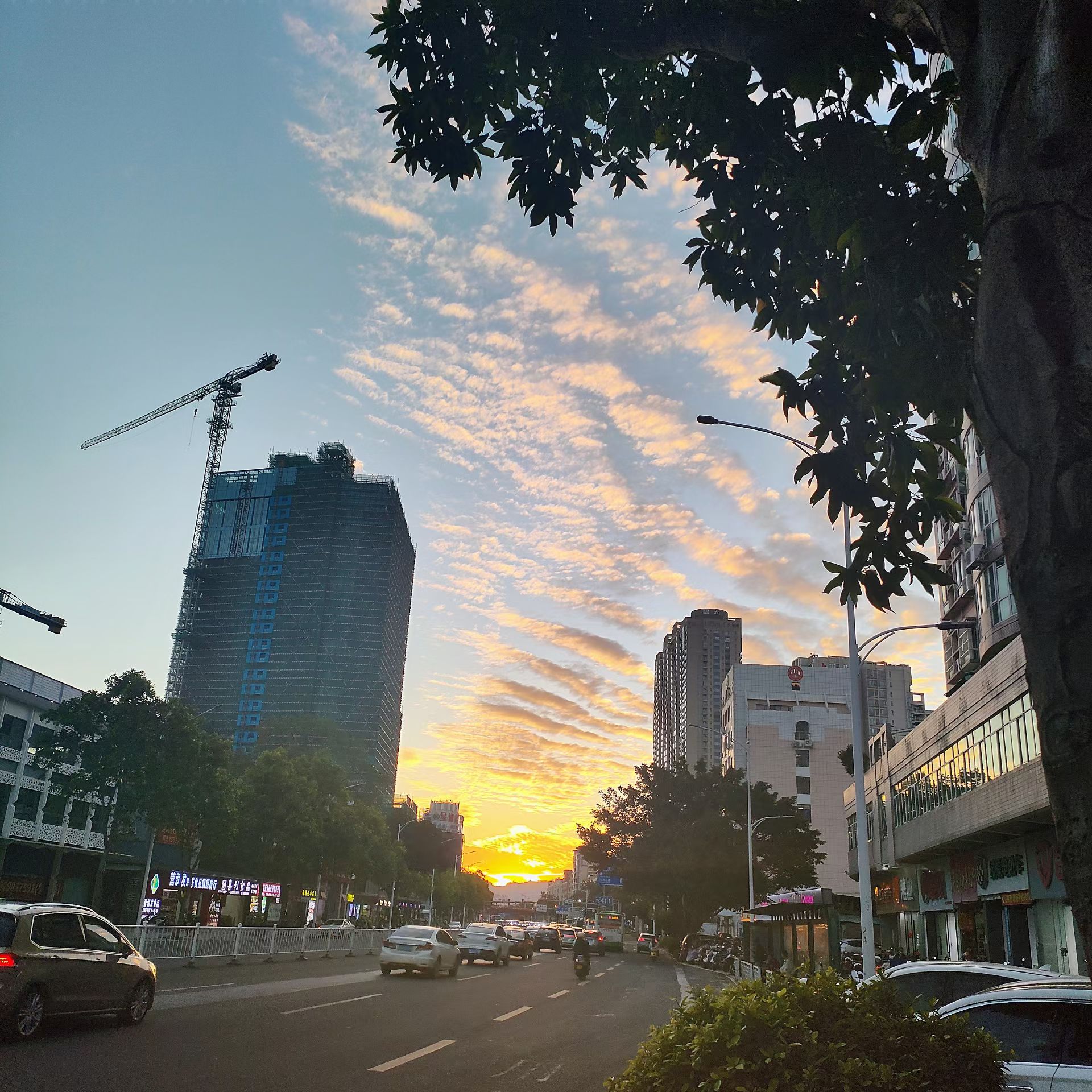 在睡觉前,想把今天的蓝天白云和美丽晚霞分享给你