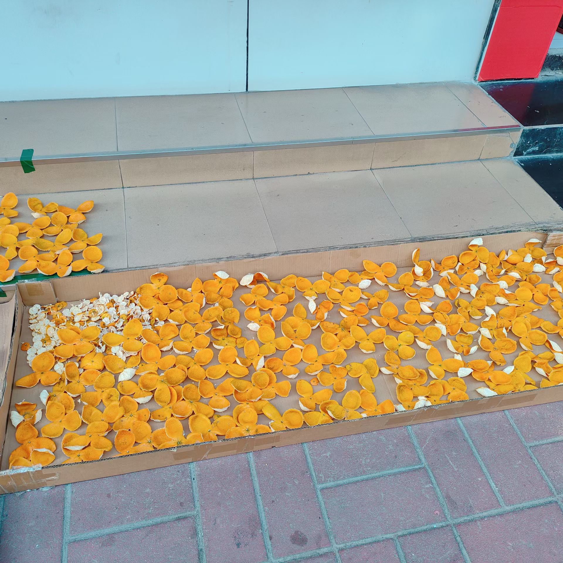 我问阿姨:阿姨,全都是你自己一个人整的嘛?取出果肉的果皮好规整,好好看。