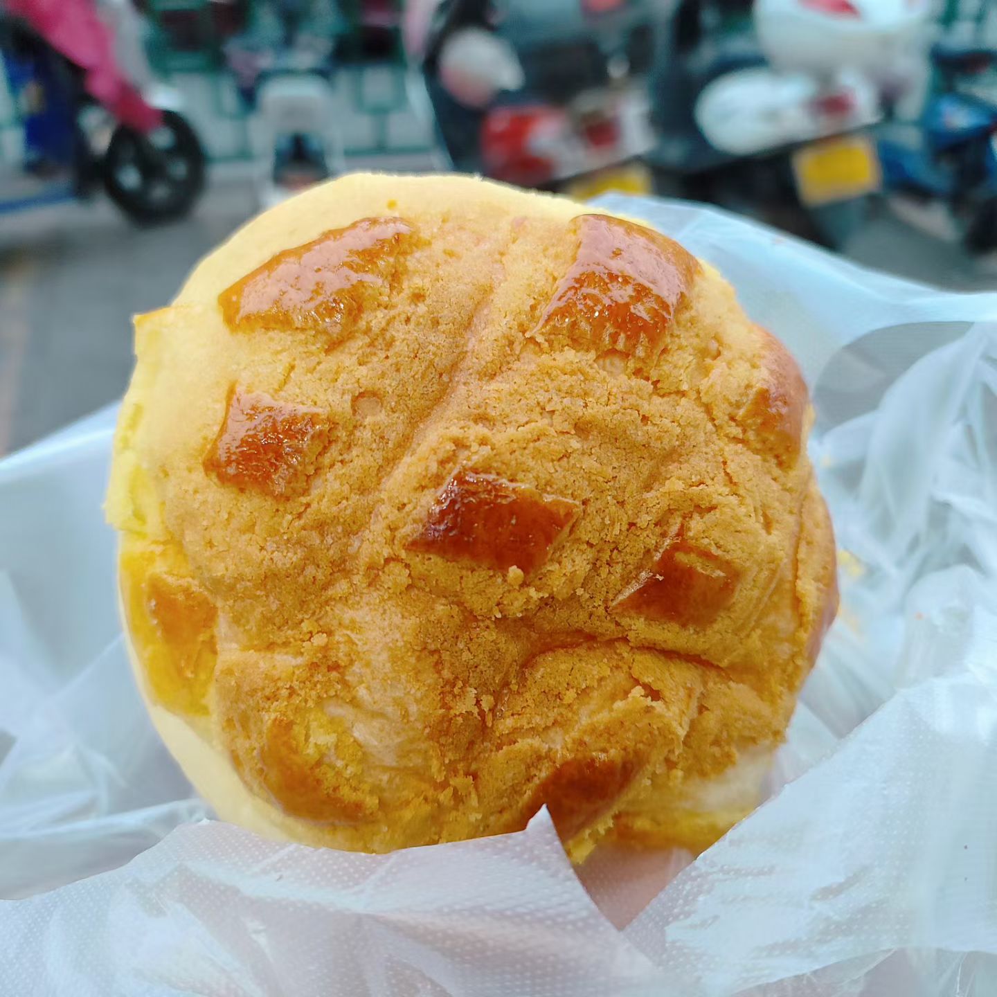 我特别喜欢菠萝包上面的酥皮,又香又脆又甜,嗯呐,好美味呀~