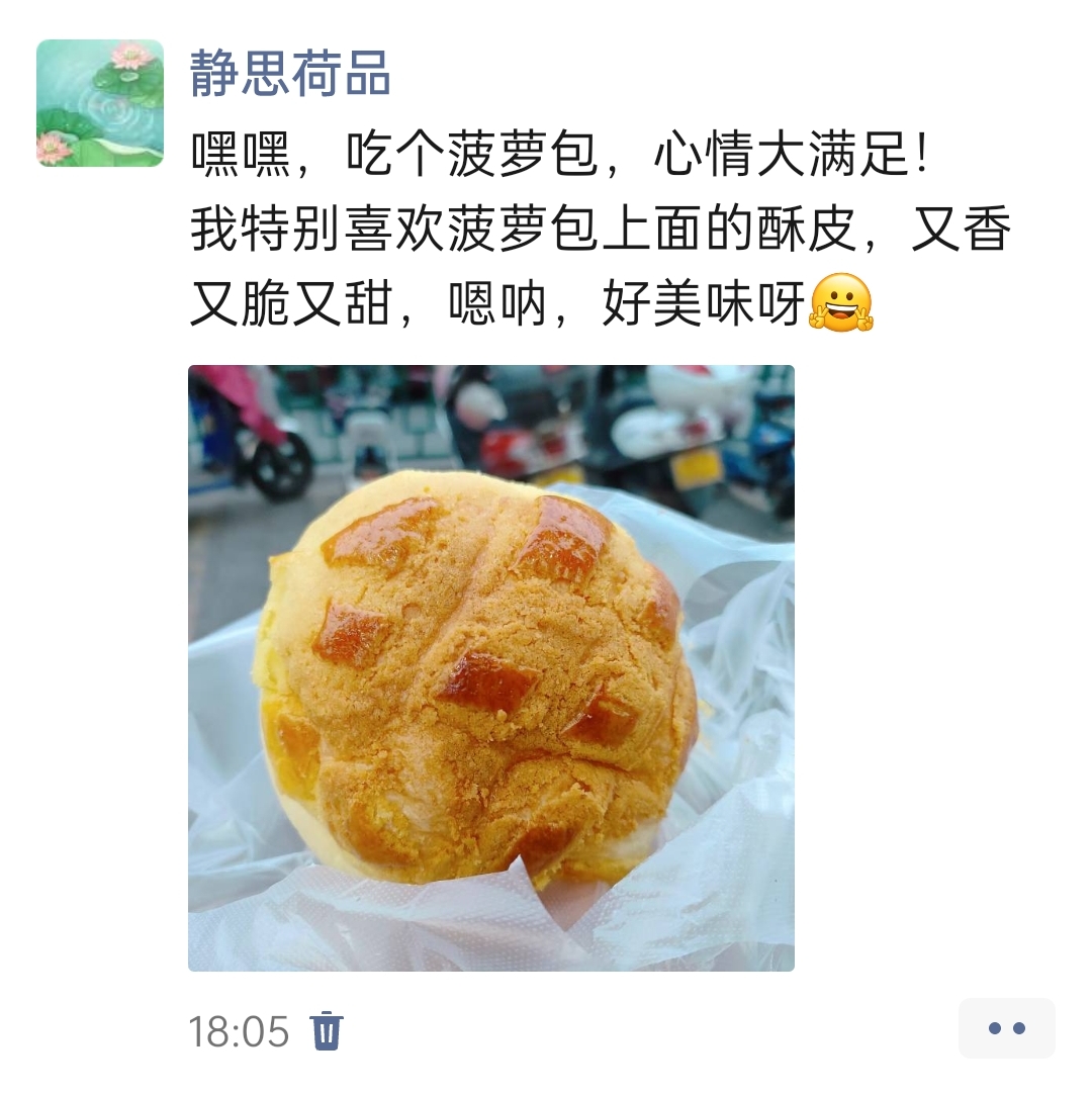 2.下班路上吃了个菠萝包,哇哦,菠萝包上香香脆脆的酥皮也太好吃了吧!菠萝包一块五一个,haha,一块五的快乐!