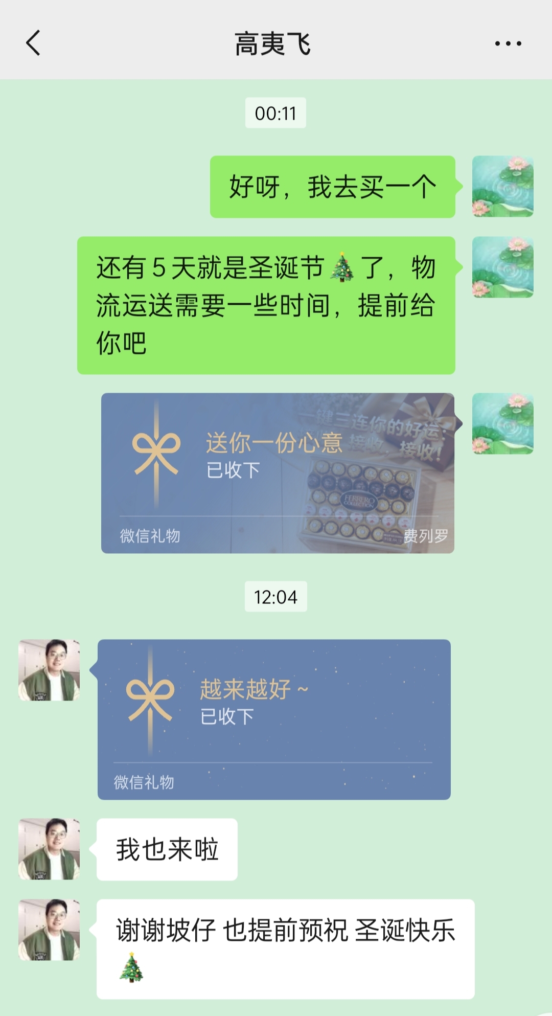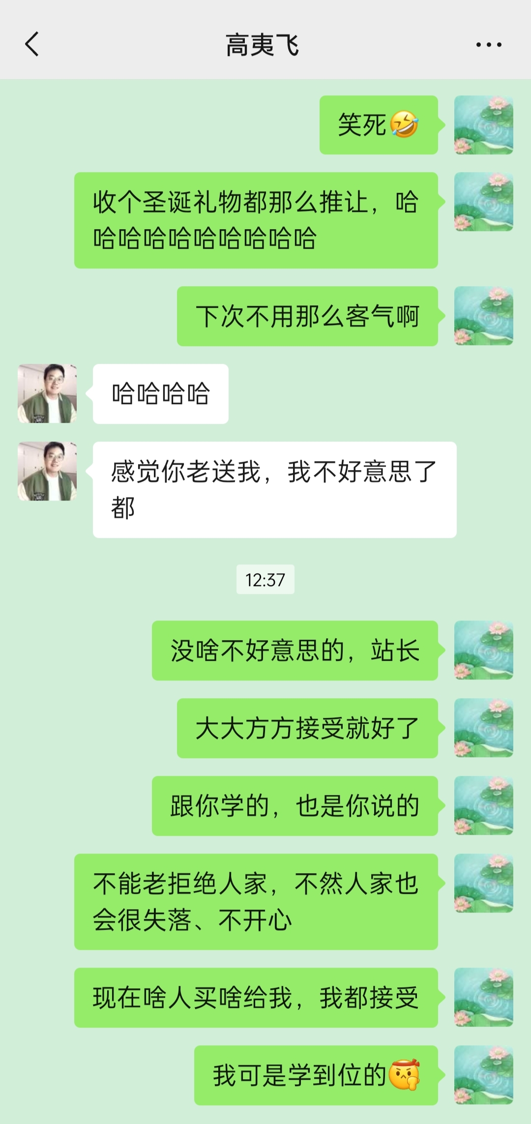 哈哈哈哈哈哈哈,笑死,收个圣诞礼物我俩都那么推让,下次不准那么客气啦!