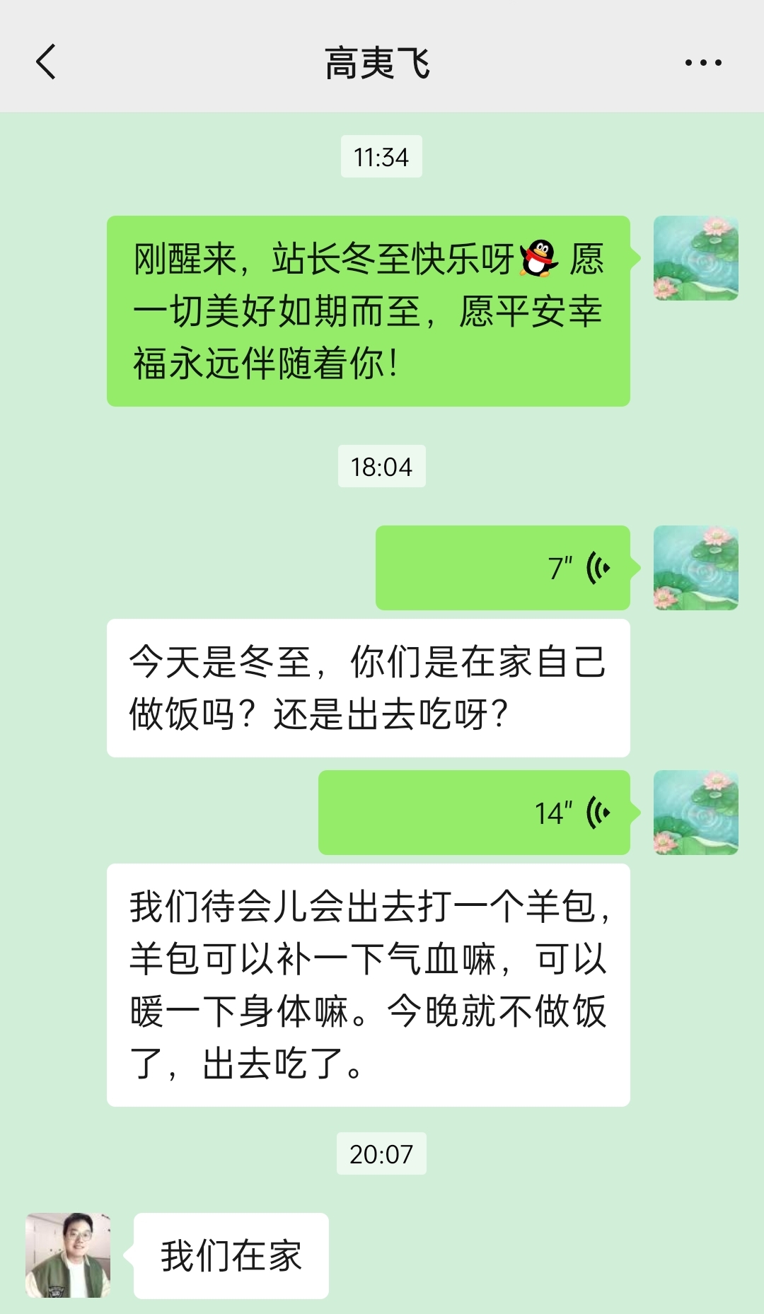 今天冬至嘛,我问站长是在家自己吃,还是出去吃。我们今晚出去打羊煲,补气血、暖身体