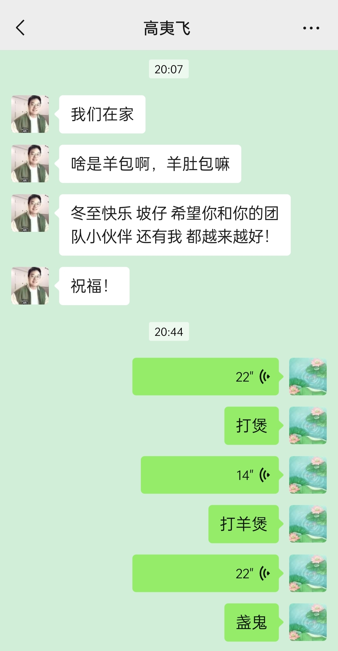 哈哈哈哈哈哈哈哈哈哈,他是不是听不懂我在说啥,把我的语音转成文字,发现还是不懂,于是就问我“啥是羊包啊,羊肚包嘛”
