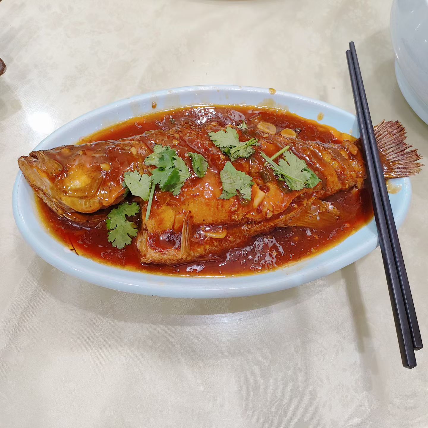 哇!今天和同事们出去吃饭,海带玉米排骨汤太好喝啦,配料足,煮的时间够长,特别入味好喝。相思鱼也做得好好吃,灵魂酱汁一绝,鱼肉鲜香滑嫩入味。嗯,用我们粤语俗语来说,就是“食过翻寻味”。什么意思呢?意思是品尝过美味食物后念念不忘,想要再次品尝或回味。