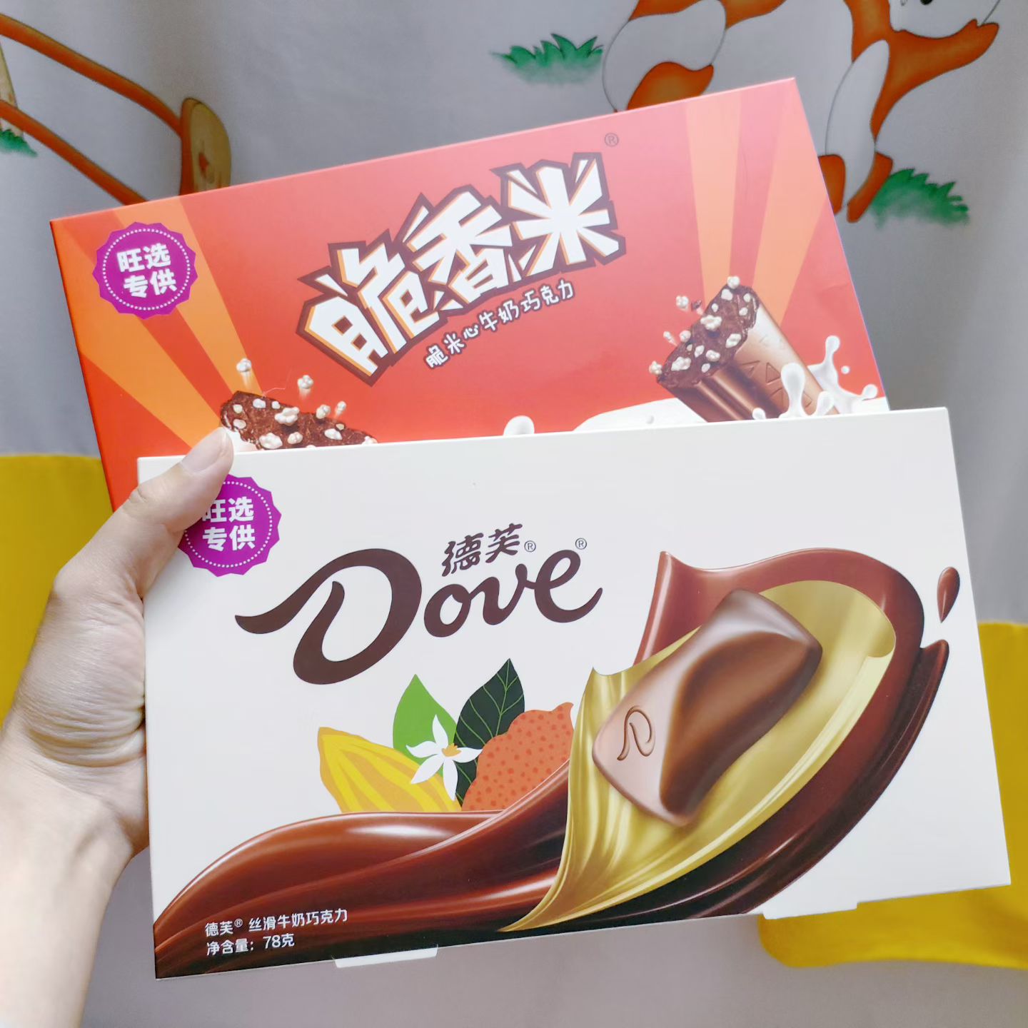 脆香米巧克力和德芙巧克力我都有吃过,还挺不错的,在超市里给自己和小姑买巧克力时,给肖肖也买了一份。