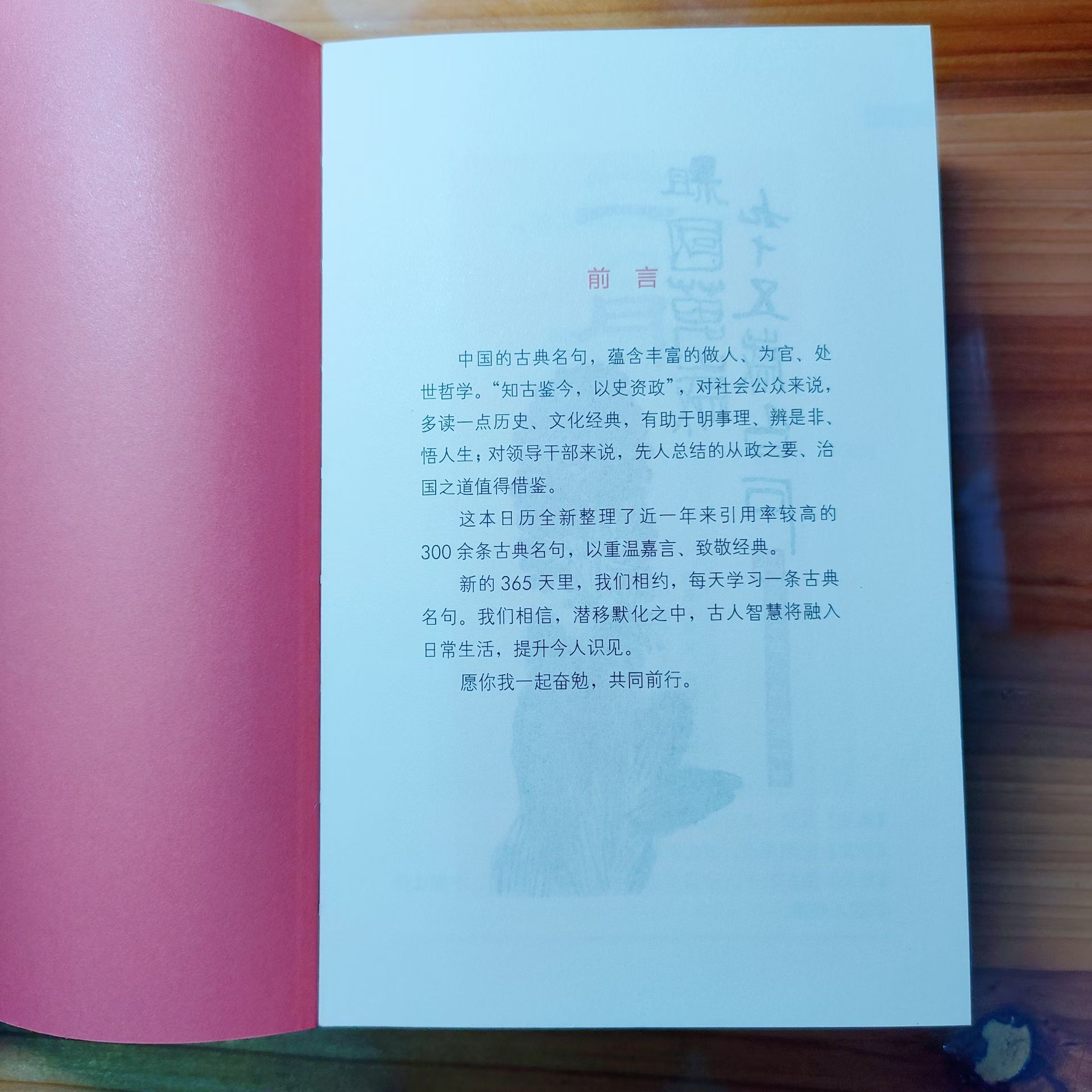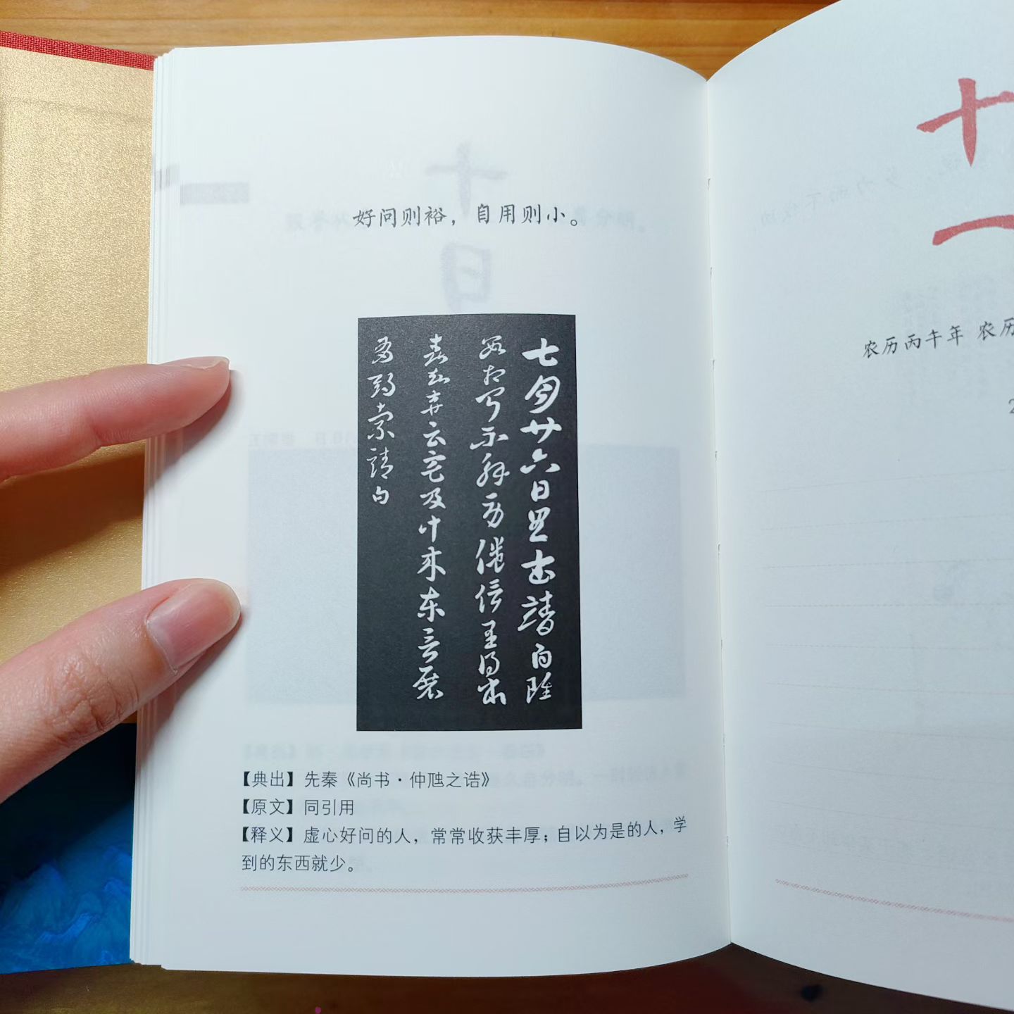 懿文说,见你那么喜欢中华优秀传统文化,这本日历你一定要收下!