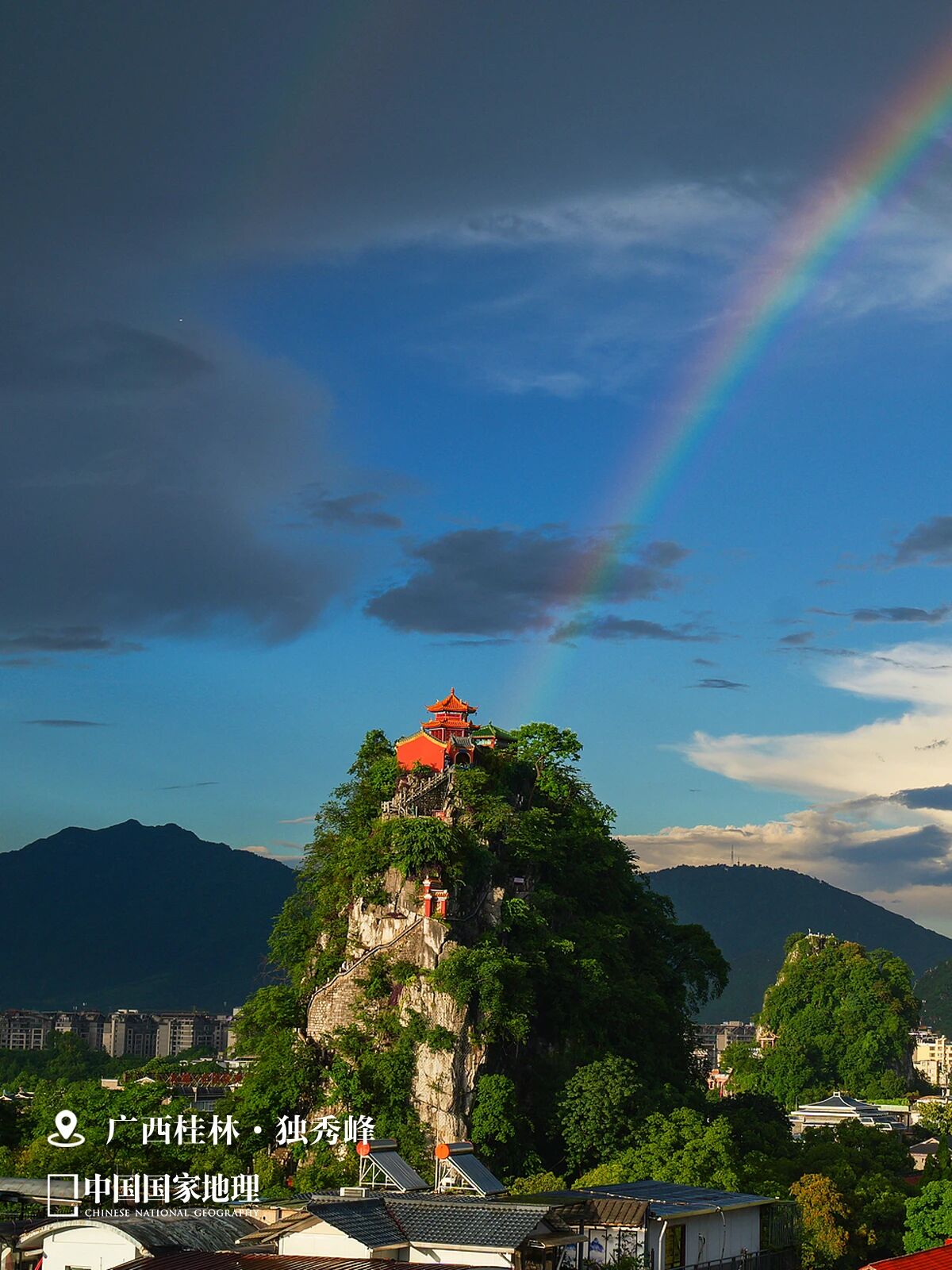 关于它的“孤独”,全在袁枚的诗里:来龙去脉绝无有,突然一峰插南斗。桂林山水奇八九,独秀峰尤冠其首。三百六级登其巅,一城烟水来眼前。青山尚且直如弦,人生孤立何伤焉?