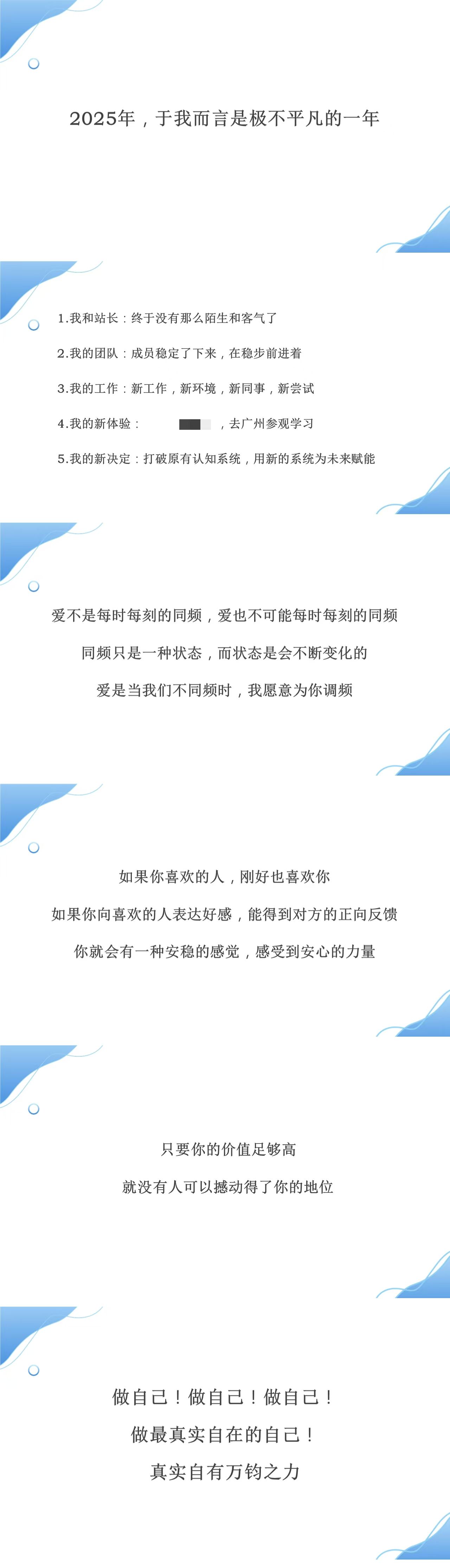 2025年年初,我给自己写下新一年的关键词是“松弛与自由”。2025年全年,我真的做到了松弛与自由,工作、学习、团队和生活全都是围绕“松弛与自由”展开的。