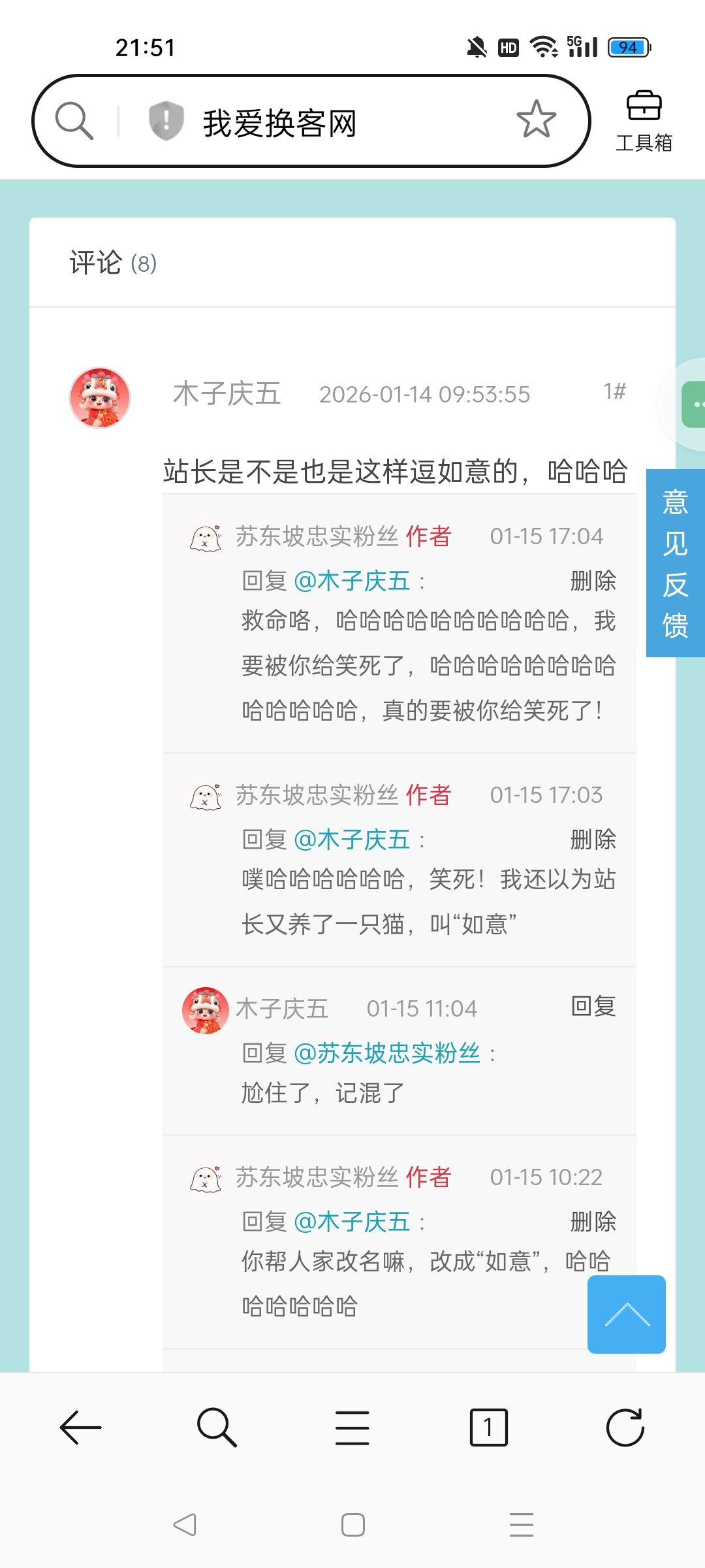 嘿,大佬他评论我了,问我站长是不是也是这样都如意的