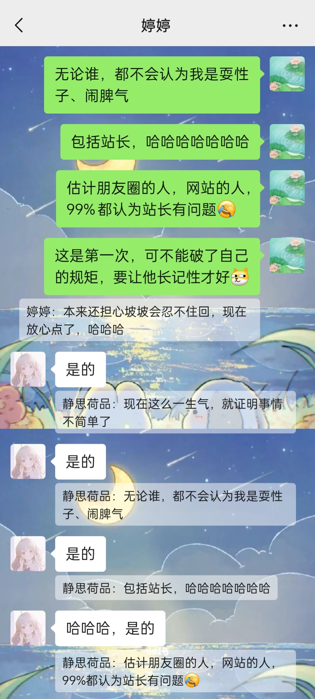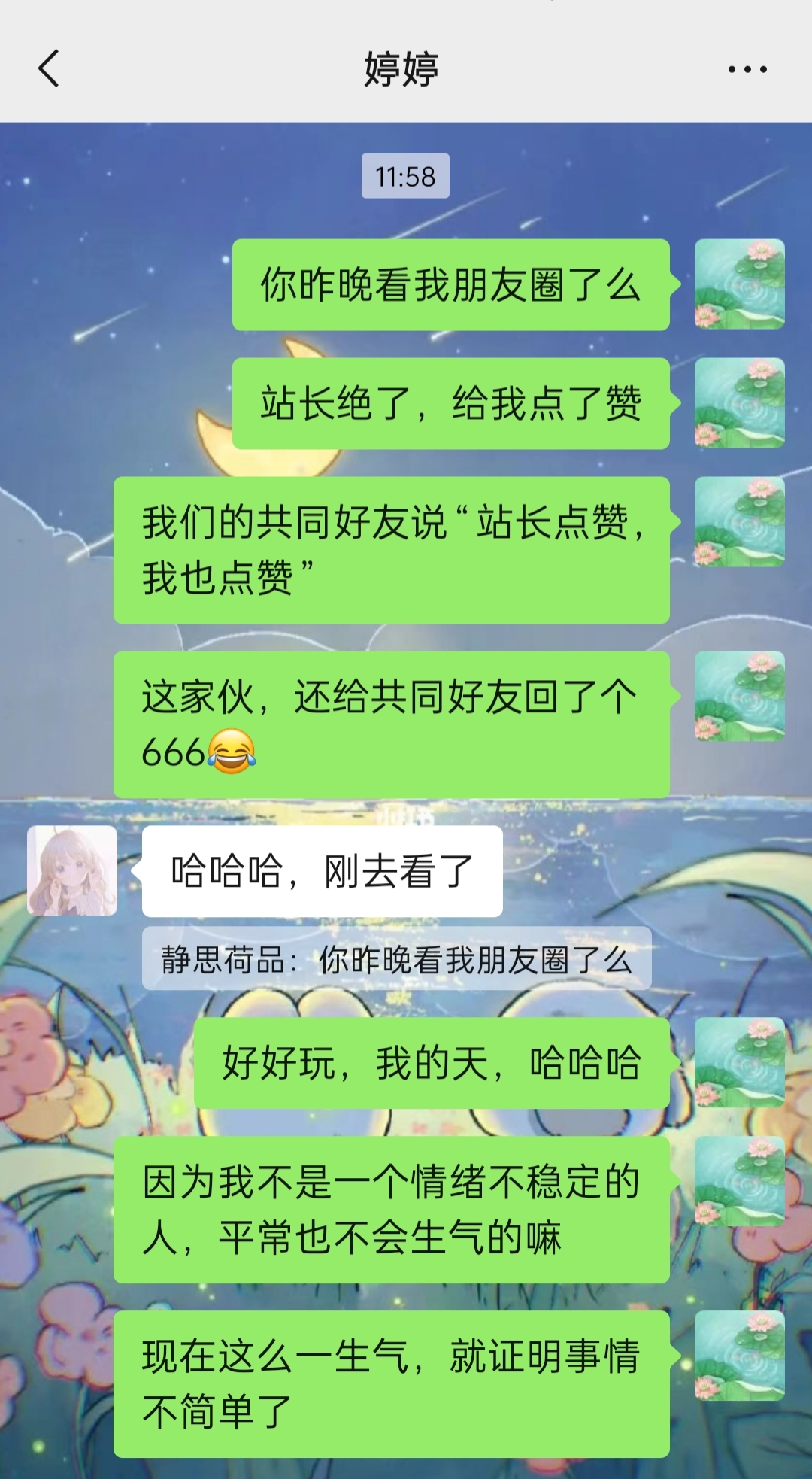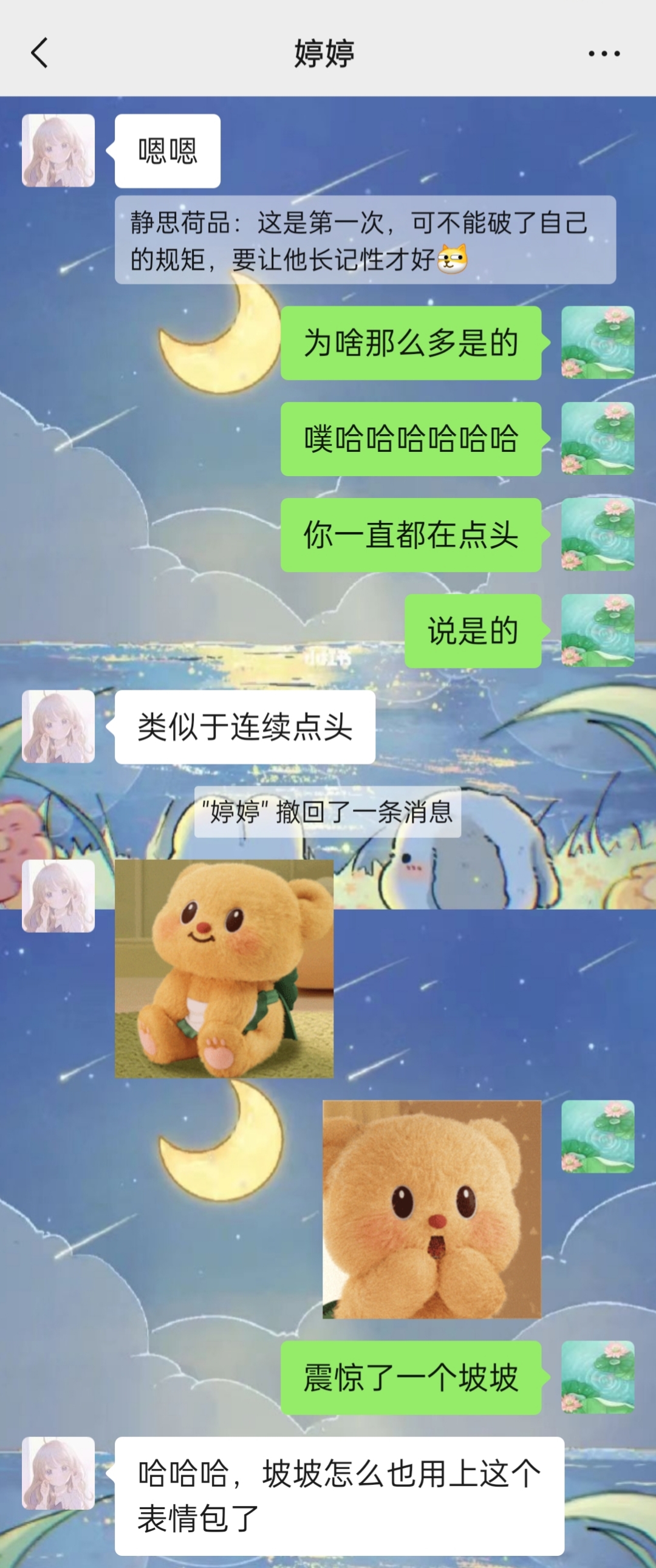 婷婷说类似于连续点头,还给我发来一个连续点头的表情包,哎呀,太可爱啦!