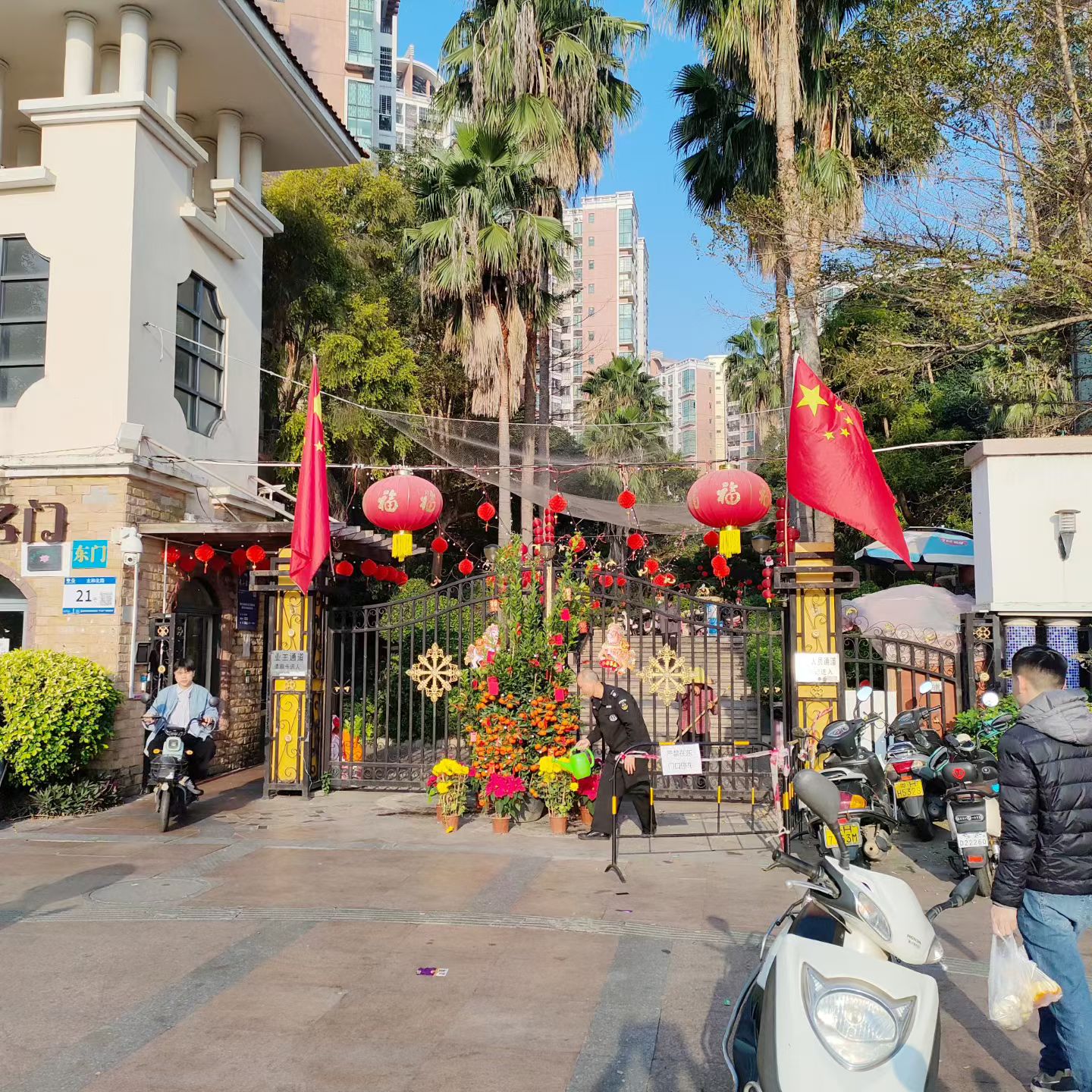 上班时路过端州名门小区,小区门前浓浓的过年氛围,国旗、灯笼、贴纸、年桔和年花,红红火火,好喜庆,好热闹哇