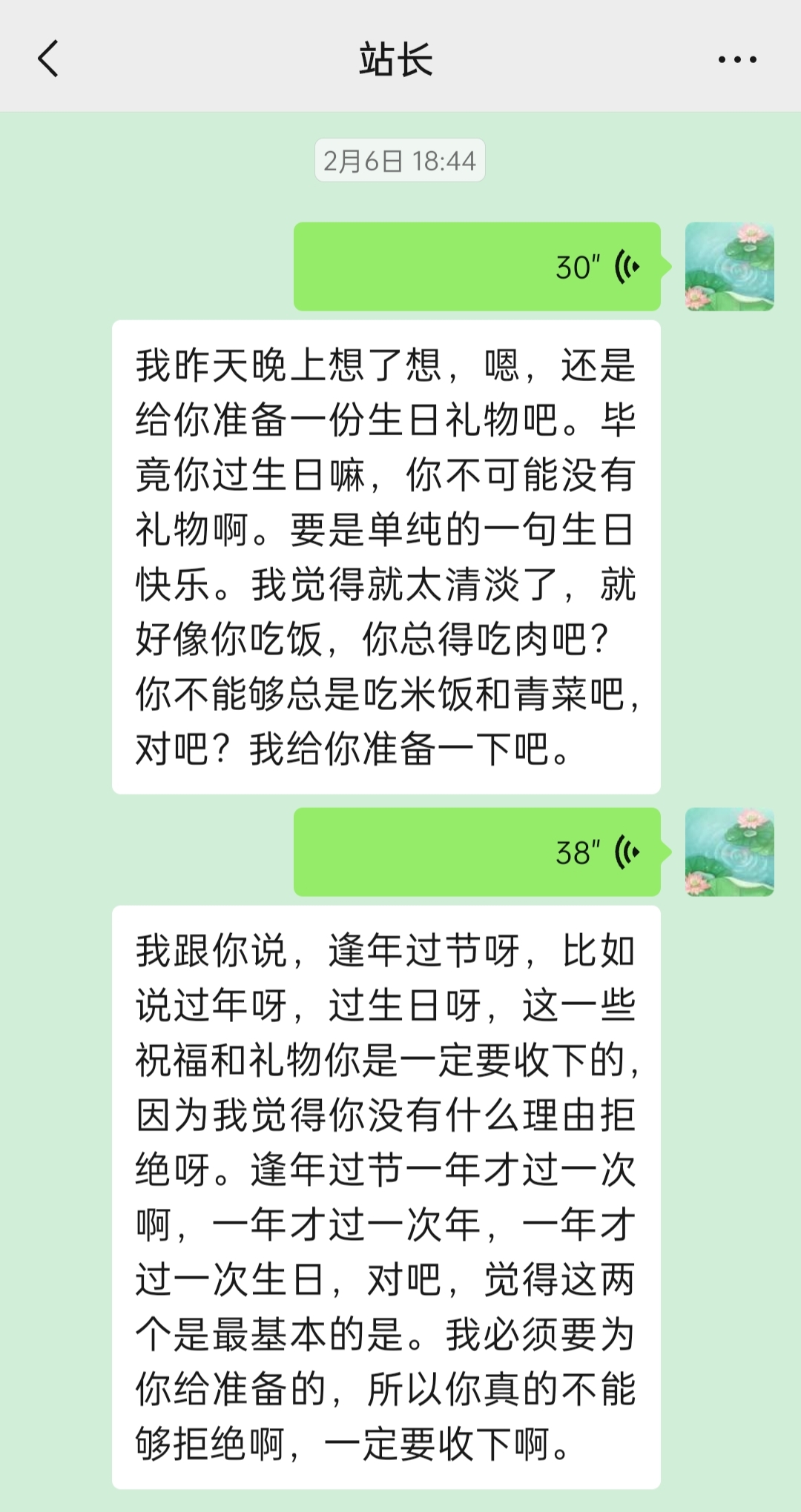 站长跟我说,他觉得很麻烦,又要挑选礼物,想送啥之类的。