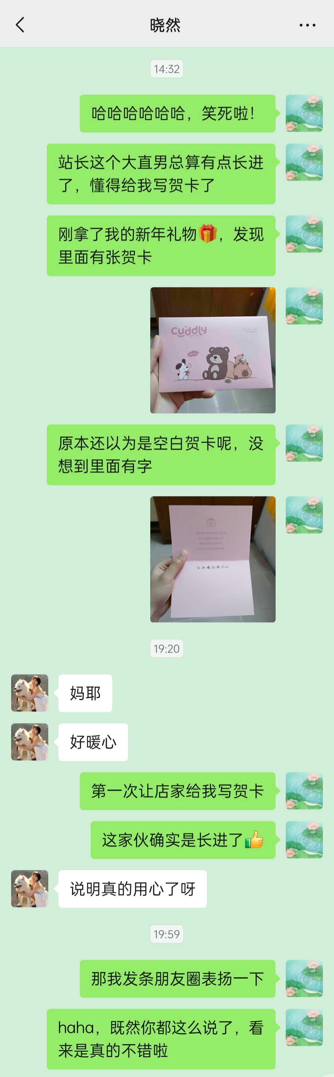 站长这个憨憨,懂得让店家给我写贺卡了,这还是他第一次让店家给我写贺卡,往常他都是直接买了礼物就算了,哪里还会搞贺卡这些东西的啊