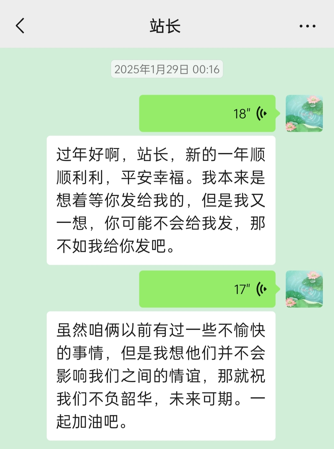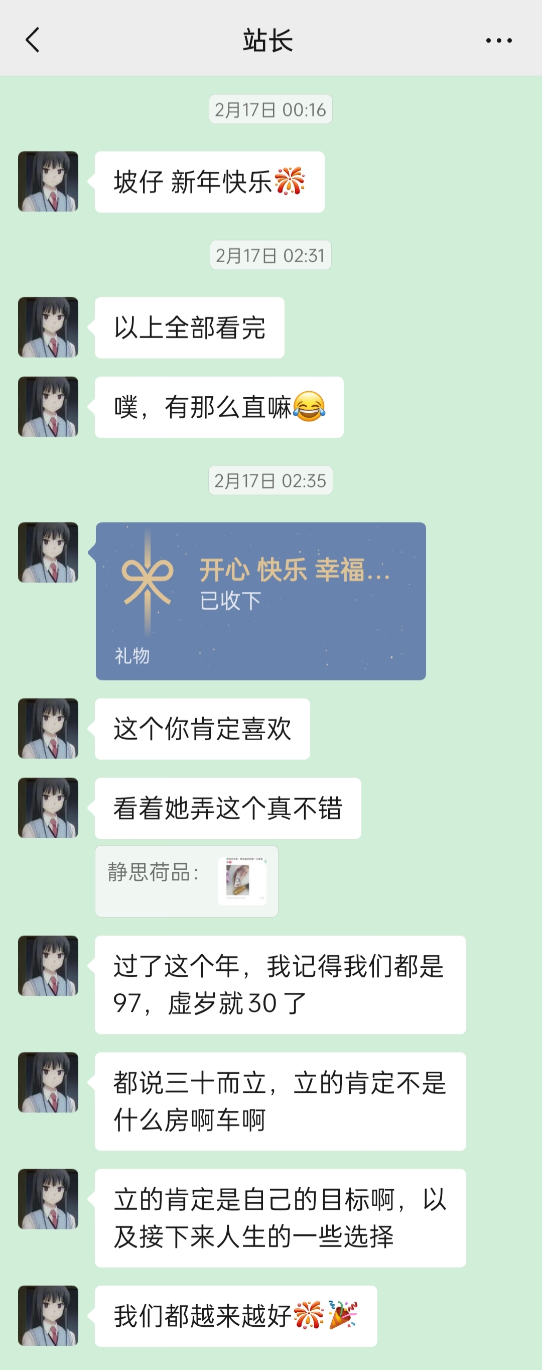 我惊讶地发现,原来站长这个憨憨也有不憨憨的时候,他今年竟然会主动跟我说“新年快乐”了!!