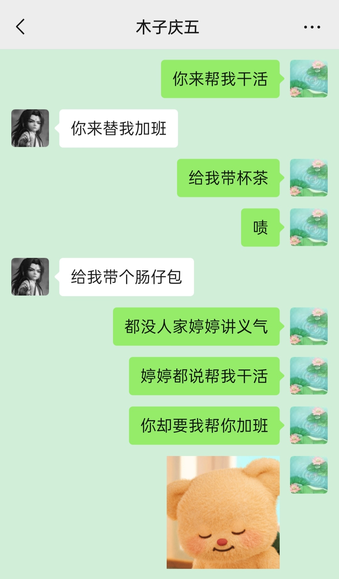婷婷都说帮我干活,你却要我帮你加班,还要给带个肠仔包(捂脸)