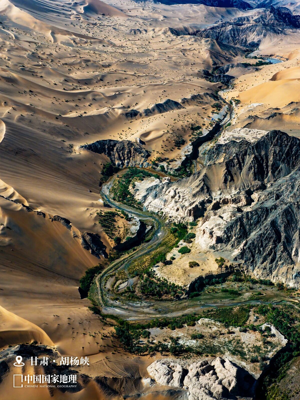 图③ 甘肃酒泉阿克塞哈萨克族自治县, 刚好地处甘肃、青海、新疆交汇处,可谓集三大“外星地貌”省(区)之大成,图为该县多坝沟村胡杨峡。