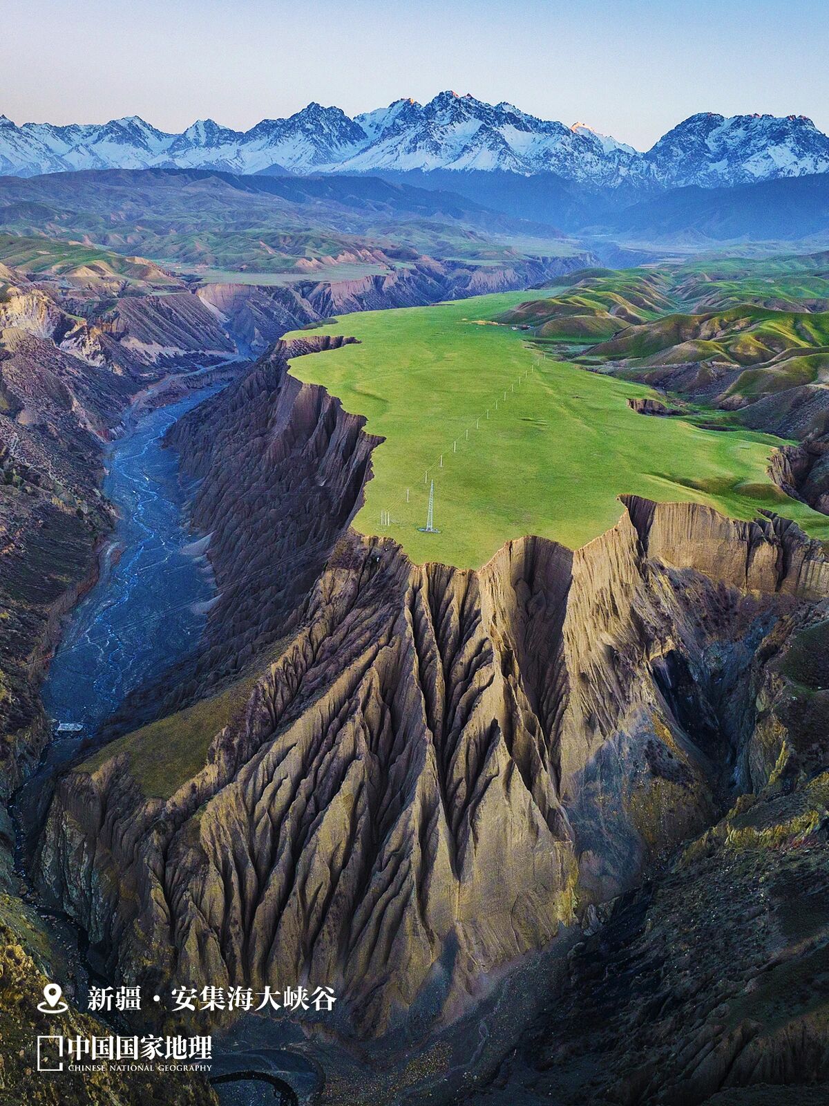 图⑤ 新疆塔城地区沙湾市安集海大峡谷,安集海河出天山北坡切开数百米五彩沟壑,大地就此崩裂成最绚丽“伤痕”。