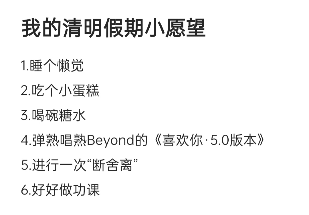 距离清明假期还有一天多的时间,我就已经把假期小愿望写好啦!
