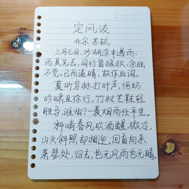 吃两块懿文送我的阿胶糕,用站长给我买的钢笔和墨水,写了首东坡的《定风波》。极度珍惜到不舍得用=浪费。好东西就是要用起来!用起来呀!