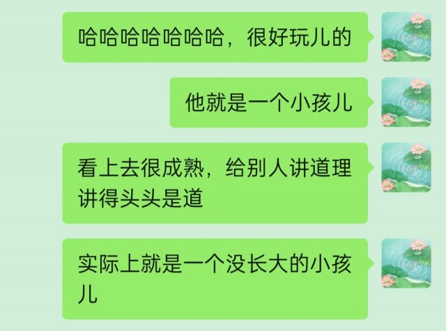 “他啊,他就是一个小孩儿,可好玩儿了。”今天和朋友聊天,讲到站长,哈哈哈哈哈哈哈,在我眼里,他就是一个小孩儿,好玩的同时又好可爱。有时候看到他的一些话语和举动,都会让我忍俊不禁,快要被他给笑死了(捂脸)。