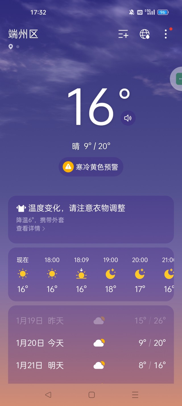 天呐!咋突然降温了,一下子降了6°。广东...