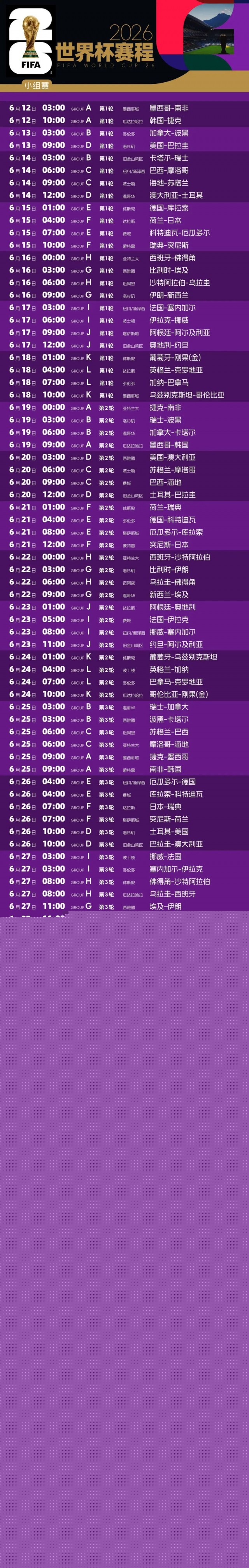 美加墨世界杯赛程出炉,揭幕战将于6月12日3点举行。哇,世界杯又要来了呀!